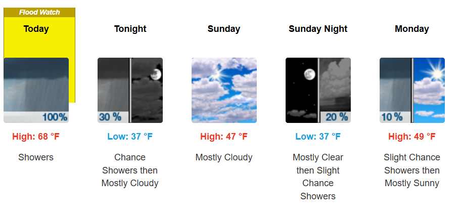 The forecast for Warsaw predicts rainfall totals between a quarter inch and a half inch on Saturday.