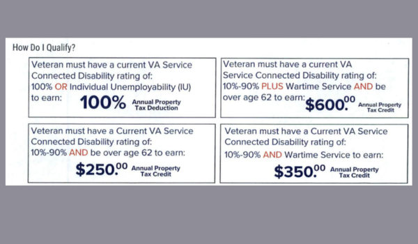 It also eliminates the assessed value, which penalized a lot of veterans because there was a catch — If you owned a home more than $240,000, you were not able to take advantage of this, particularly our peace-time veterans, McDowell said.