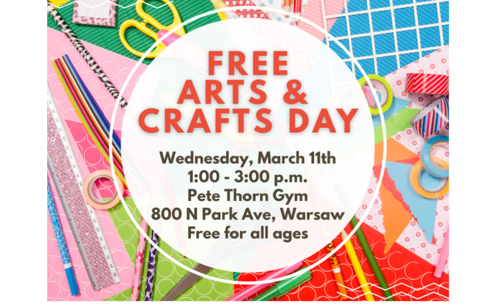 WARSAW — Warsaw Parks and Recreation will offer a free Arts & Crafts Day on Wednesday, from 1–3 p.m. in the Pete Thorn Gym at 800 N Park Avenue, Warsaw.