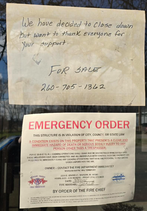 Wongs restaurant in Warsaw closed over health code violation